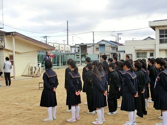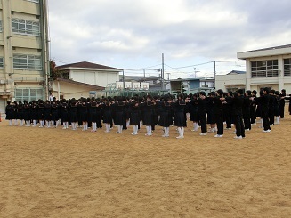 週に1回各学年で行われる。各学年の朝の集会の様子を紹介します。1年生は、水曜日。2年生は、木曜日。3年生は、金曜日。雨天時は残念ながら行えませんが、基本毎週行われます。各学年の先生方が、それぞれの感じたことや伝えたいこと、時には経験談など様々なお話をされる場面です。進行は、各学年の学年委員。
