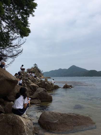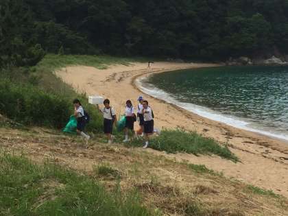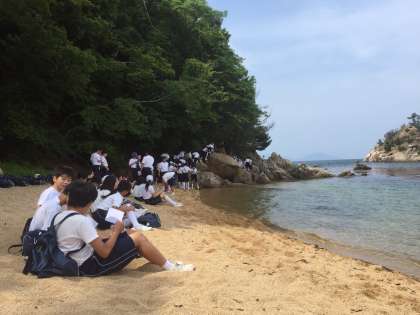 6、7組は浜辺の掃除をして、磯観察をしました。