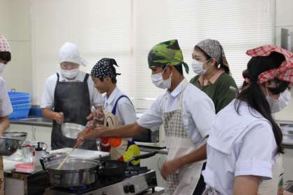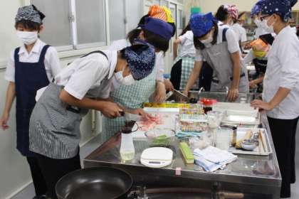 本日の3、4限に2年6組の家庭科では調理実習を行っていました。