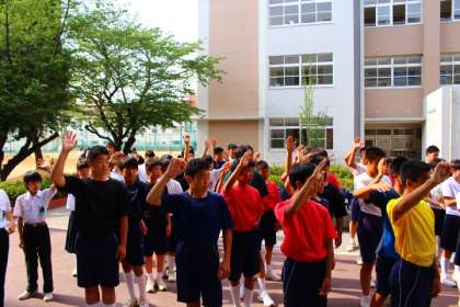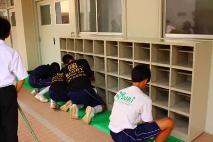 ラグビー部は朝練の時間を使って参加してくれていました。