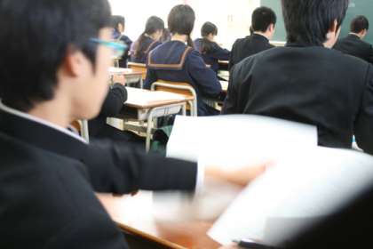 本日は2学期末テスト二日目。登校した生徒は足早に教室へ入り、テスト開始のチャイムを待ちます。