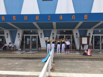 7月25日に大阪府近畿予選大会を2位で通過することができ、本日より和歌山県にて第65回近畿中学校総合体育大会が行われます。今日の演技は終了し明日に自由演技が行われます。