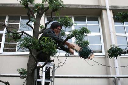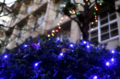 昨日から5時を回って薄暗くなると、枝葉のなくなった木々に明かりが灯りました。緑中イルミネーションです。本年で5年目となる12月の取組みは、厳しい寒さの下校時に、生徒らの気持ちをほっとさせる本校の名物となってきました。暗くなった家までの道のりを十分注して下校してください。