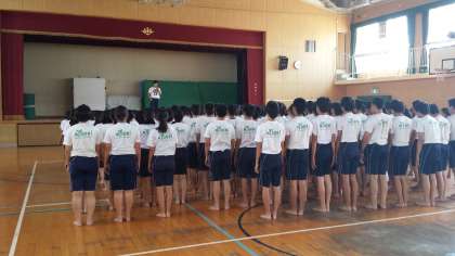 写真は今日が初練習となったマスゲームの様子です。なかなかタイミングが合わず、失敗の連続でした。