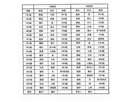 15日(土)は参観授業の予定になっています。2限の授業予定になりますので下の時間割をご確認ください。また、当日は鶴見区学校選択制を検討されている小学校6年生の保護者様を対象とした学校公開と説明会を兼ねています。なお、入学前の新入生保護者説明会は2月頃の予定となります。
