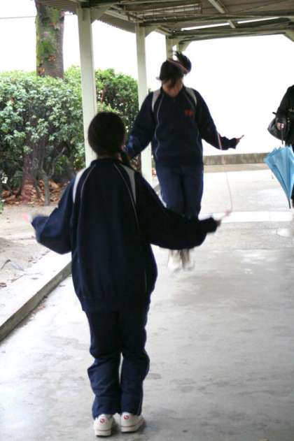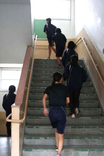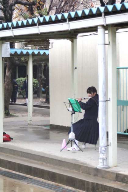 天候が悪く、グランドが使えなくても、階段や軒下をうまく使って練習を進めます。冬の寒さを吹き飛ばしてください!!