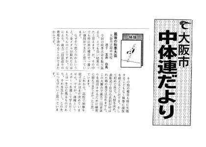 大阪市中体連だよりに、3年生2組の玉井白鳥君の記事が載りました。<中体連だより