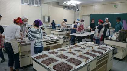 文化祭に向けての前日準備をPTAも行いました。会議室に手作り教室の作品が展示され、学年学級委員会から「スワロフスキーデコグッズ」と成人教育委員会から「プリザーブドフラワーアレンジメント」が用意されました。元気アップ事業の活動紹介も同時に展示しています。来校されたおりには是非ご覧ください。また、調理室にはPTA役員の方々を中心に多くの保護者の方が集まり、明日に向けた活動をされていました。生徒のみなさんは楽しみにしておいてください。