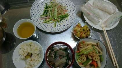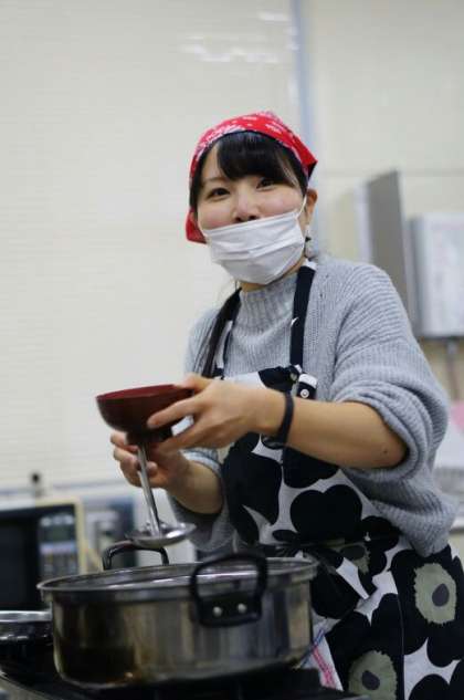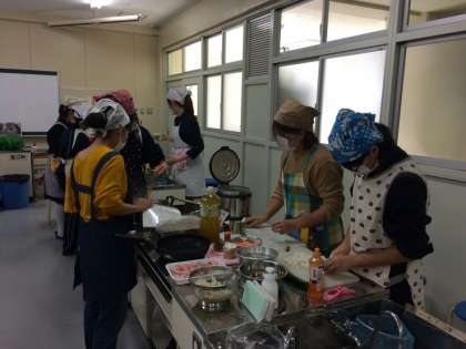 の旬の野菜を使った秋の献立でした。普段、出会う事ない生徒のみなさんや保護者の方々との時間は、料理を通して色々な会話が弾む一時となりました。