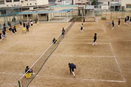 生徒会司会のはじめの会から始まり、活動体験前半の運動部はラグビー、陸上、ソフトテニス、バスケットボール、卓球部でした。