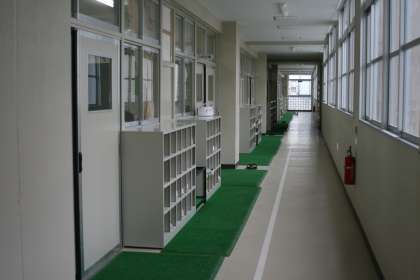 生徒たちが穏やかな心持でテストに臨めるよう、工事関係者の協力を得ています。