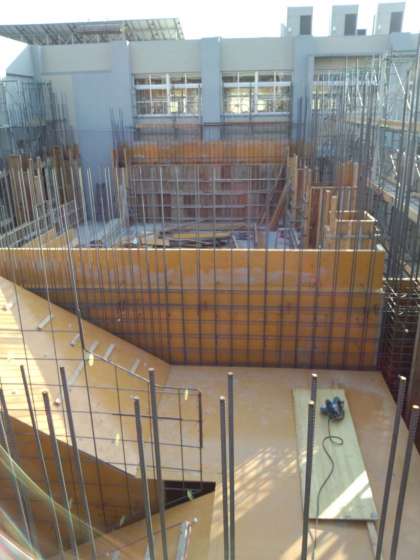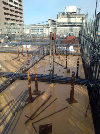 北棟4階梁配筋と、南棟3階の柱壁型枠組立を行いました。