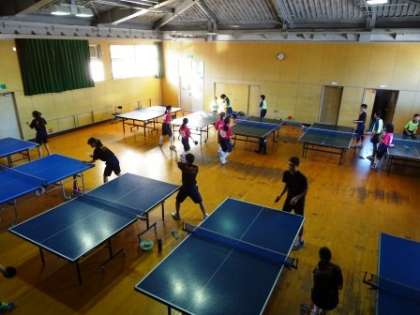 そのかわり、各部活動の活動場所からは気合いの入った声が聞こえてきていました。冬休みの初日から校内で元気に活動していたのはラグビー部に女子バレー部、吹奏楽部に体操競技部、そして卓球部。