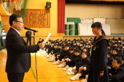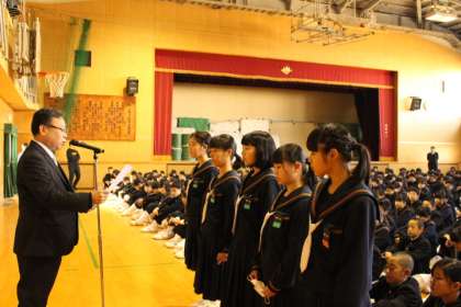 校長先生からのお話の後、諏訪先生より3学期の生活面での注意と、次につなぐためにしっかりと振り返り、締めくくりの学期にしてほしいというお話がありました。