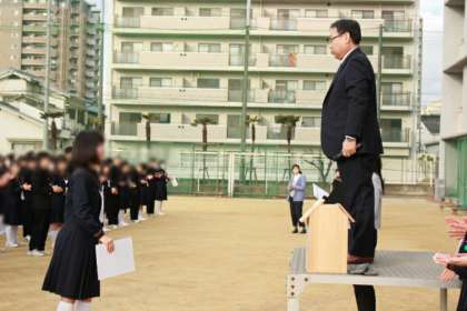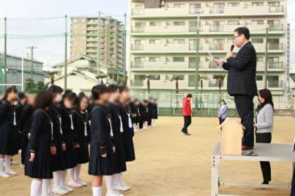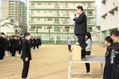 本日は3学期初めてのグラウンドでの全校集会でした。