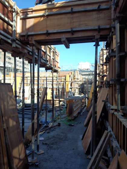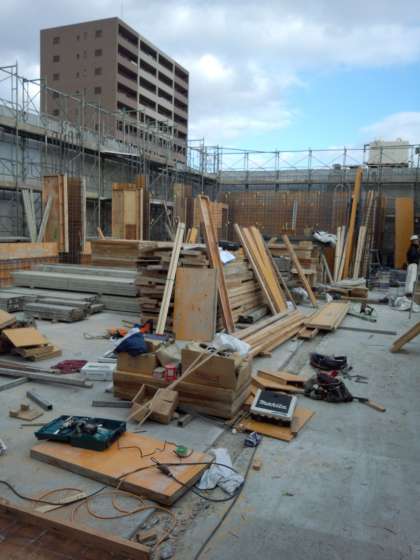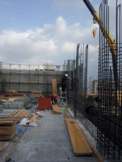 北棟型枠組と南棟4階柱鉄筋の圧接を行いました。