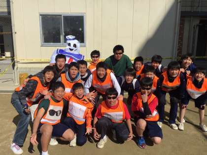 逃げる役が小学生、追いかける役が中学生と大人(PTA役員の方々)という設定でした。開催前の参加希望人数では小学生が1日合計600人近く(!)でしたので、当日にはラグビー部とソフトボール部の生徒が急遽、助っ人ボランティアとして駆けつけました。地域の大人と協力して、小学生を楽しませる活躍を見せてくれていました。