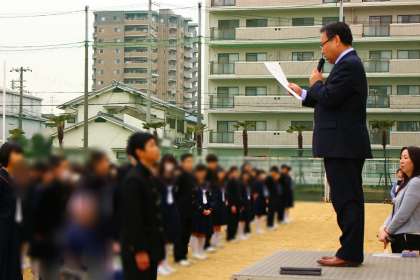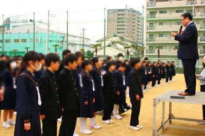 本日の全校集会は今年度、1年〜3年生まで揃っての最後の集会でした。