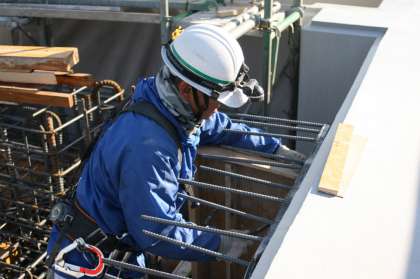 屋上からは、新校舎建築で汗を流す作業員らの仕事に励む姿が見られます。