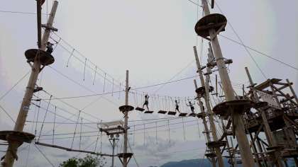 1,2,3組もスカイアドベンチャーが始まりました。後半クラスとは離れて「びわこスカイアドベンチャー」での取り組みです。