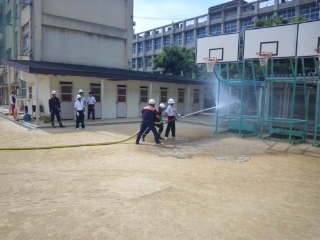 また、消防士の方からは、地震のときに火事が発生した場合、消防車が到着できないことが多く、地域住民や中学生が消火活動を行わなければならない時があり、いざというときに行動できるように準備しておいてくださいと、お話がありました。