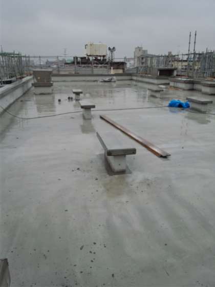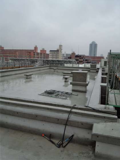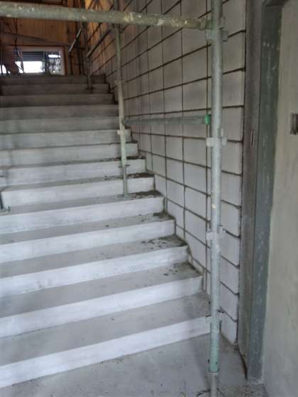 コンクリートブロックは、階段の壁と北校舎の廊下端に設置していきます。