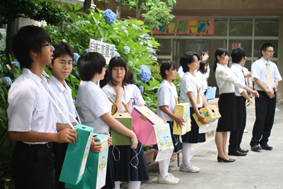 この募金活動は、子どもたちが学校で育てた苗木を、東日本大震災の被災地に植樹する「緑のバトン運動」というものです。被災地のことを忘れず、寄り添う気持ちを持ち続けてほしいとの願いを込めて、今年度から苗木を育ててくれる学校を朝日新聞社が募集していました。そこに本校、生徒会のある生徒がその思いに共鳴し手を挙げてたことで、学校として募金活動を行うことになりました。