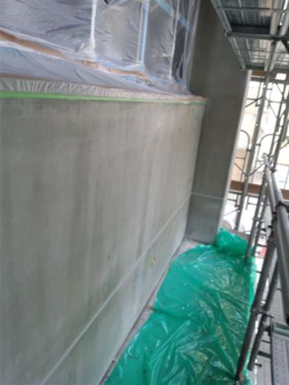 外壁吹付仕上げは、南校舎東面→北校舎南面→北校舎東面→北校舎北面と反時計回りに進んでいきます。