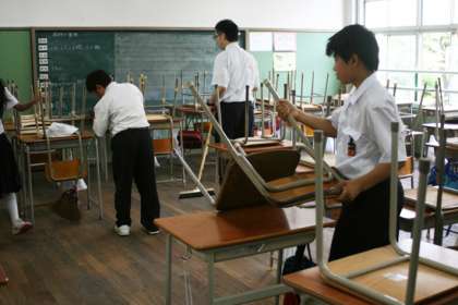 掃除の時間だけではなく、授業前にも机の整頓を行います。