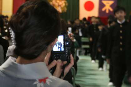 平成26年度入学式は、青空のもと満開の桜が新入生を迎え入れました。6クラス、209名の生徒が新一年生となります。少し大きめの制服に身を包んだ新入生は、緊張した面持ちで入学式に臨んでいました。