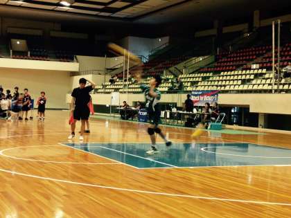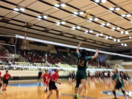 午前中はそれぞれのコートで予選リーグがあり、緑中は3勝0敗 ストレートで一位通過しました。