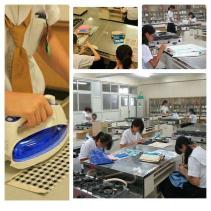 ラグビー部、テニス部、野球部、家庭科部の活動風景です。