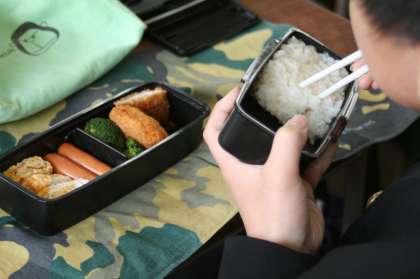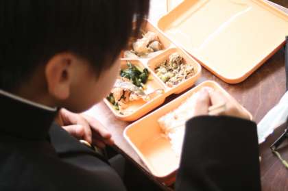 新校舎建築中のため、現在 給食配膳室が設けられていません。その影響により本校ではお弁当か給食かを選択して喫食するようになっています。配膳室ができるまでは、各フロアで配膳員の方が給食を配膳してくださいます。