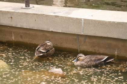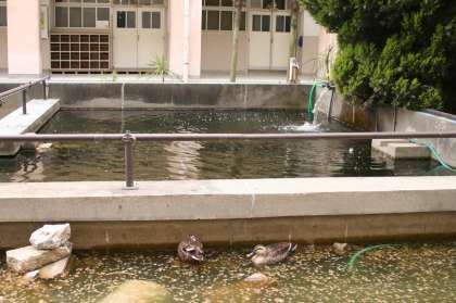お昼にさしかかると、中庭の池で羽を休める生き物がいます。緑中学校ではお馴染みのカルガモです。最近では、日中に校内で見かけることが多くなりました。今年はカルガモの赤ちゃんを見ることができるのでしょうか。ここが産卵に適した安全な場所であることがカルガモに伝わるように、温かく見守ることにしましょう!
