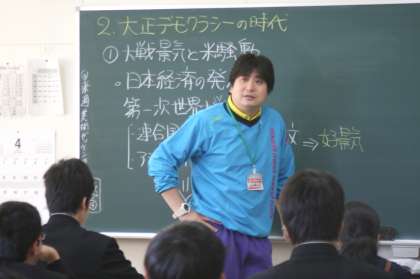 全国学力学習調査も終わり、3年生は通常授業へと戻っています。社会科の授業では、第一次世界大戦を終えた日本が、好景気に湧き、民主主義の呼び声のもと、社会運動が活発になった時代、大正デモクラシーについて学んでいます。本年度から本校にご着任された梅原先生は、当時の景気状況などを、今の日本社会に置き換えて分かりやすく解説されていました。