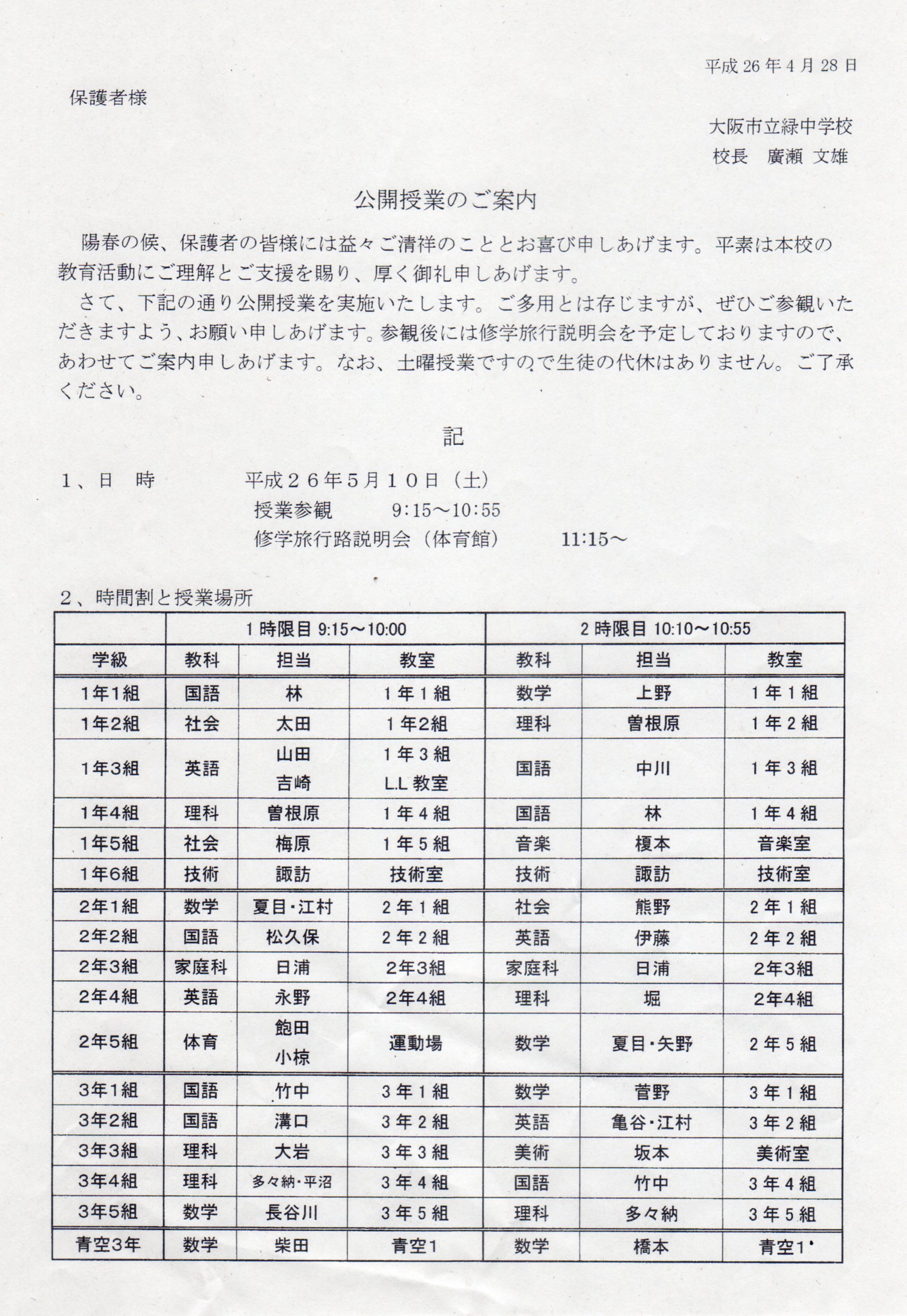 公開授業のご案内