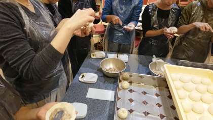 11月6日(月)にPTA成人教育委員主催の社会見学を行いました。内容は蓬莱本館にて「手作り教室 豚まん・焼売」の体験です。
