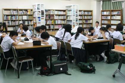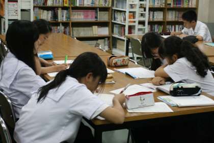 来週26〜28日の期末テストに備え、放課後図書館解放を行っています。これはこの春より本校で始まった「学校元気アップ事業」の取組みのひとつで、図書館活性化と自学自習の促進を目的とするものです。生徒は各自持参教材を広げ、もくもくと自主学習を進めています。テスト前日まで、放課後図書館解放は行っていますので、テスト範囲を確認のうえ参加するようにしてください。静かで(涼しい)集中できる場所が待っています!