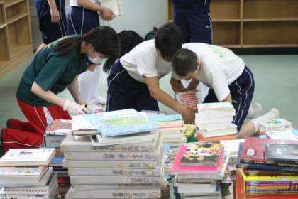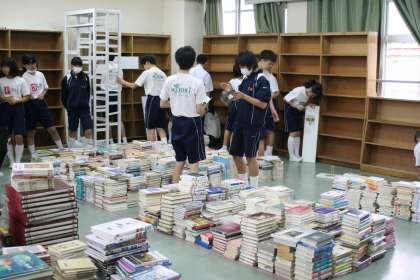 新校舎建設に伴い、少しずつ引っ越しが始まっています。そのはじめが図書室です。本日行われた委員会では、本棚の移設を行うために、約一万冊ある書架を本棚から下ろす作業を行いました。冊数が多いだけに大変な作業になると覚悟していましたが、生徒らの迅速な動きによって、一時間足らずで作業は完了しました。ひとりひとりが本気で取り組むと、すごい力が生まれるものです。