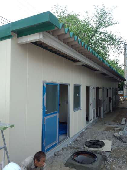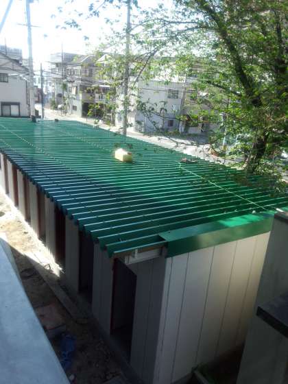 1階エントランス廻りのタイル貼り付け工事を行っています。