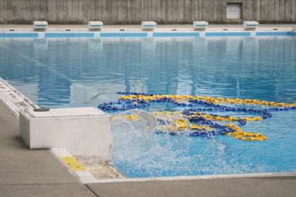 解体工事の影響で昨日からプールの水を張り替えることになりました。張り替えたばかりのプールは水温が低く、泳げる状態ではありません。