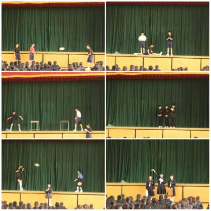 4時間目は体育館に集まり、各クラブの2、3年生によるクラブ紹介を