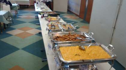 昨晩も豪華バイキングで、食べ過ぎ者続出。