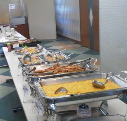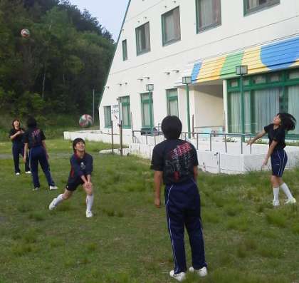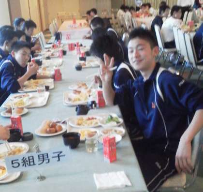 修学旅行の早朝、バレーボール部と体操部の朝の練習風景です。修学旅行が終われば、すぐに大会を控えています。5時45分から1時間ぐらいやりました。食事も進みます。