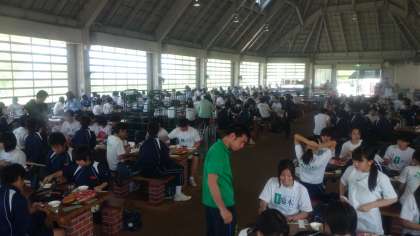 お昼はバーベキュー!! 朝、昼、晩とおなかいっぱいですね。