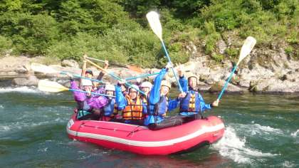 日差しと水しぶきでクタクタですがゆっくりもしていられません。バーベキューであれだけいっぱいだったお腹も今やペコペコ。食事とお風呂を済ませ、夜のレクレーションに備えます。