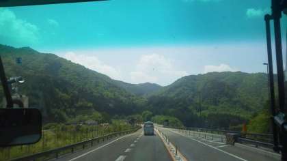 高山市内は31度を超える暑さで、バスの中のエアコンは快適です。