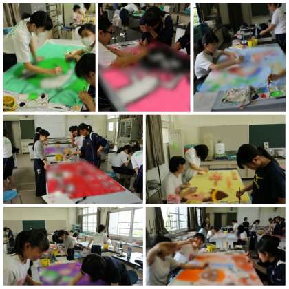 6月8日(金)の体育大会に備えて、各学年で学級旗の制作が始まりました。放課後、学年別に空き教室を使っての作業です。体育大会に向けていよいよ始動です!