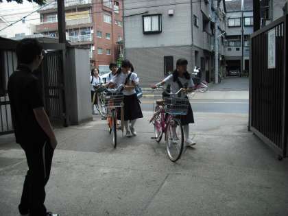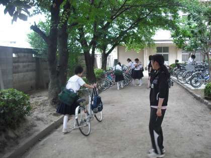 2年生の福祉体験、今日は「お礼訪問」の日です。朝早くから2年生の先生方が門に立たれ、自転車の整理をされていました。天気はあいにくの雨になろうとしていますが、生徒たちは傘を片手に、自転車を押して登校してきました。生徒達は雨に備え、カバンの中にカッパが入っているそうです。事故なく施設に到着し、お礼訪問が終わることを願っています。