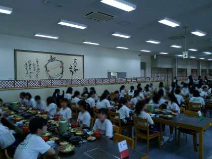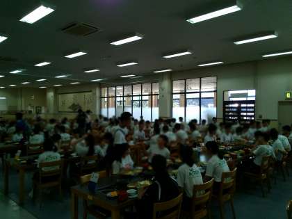 昼食会場はとても広いところです。これから皆で「いただきます」をします。